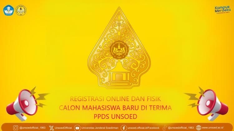 Bagi calon Mahasiswa baru Universitas Jenderal Soedirman diterima pada program studi Program Pendidikan Dokter Spesialis melalui jalur mandiri Fakultas Kedokteran Universitas Jenderal Soedirman periode semester genap Tahun Akademik 2025/ 2026, WAJIB registrasi online, pembayaran,
